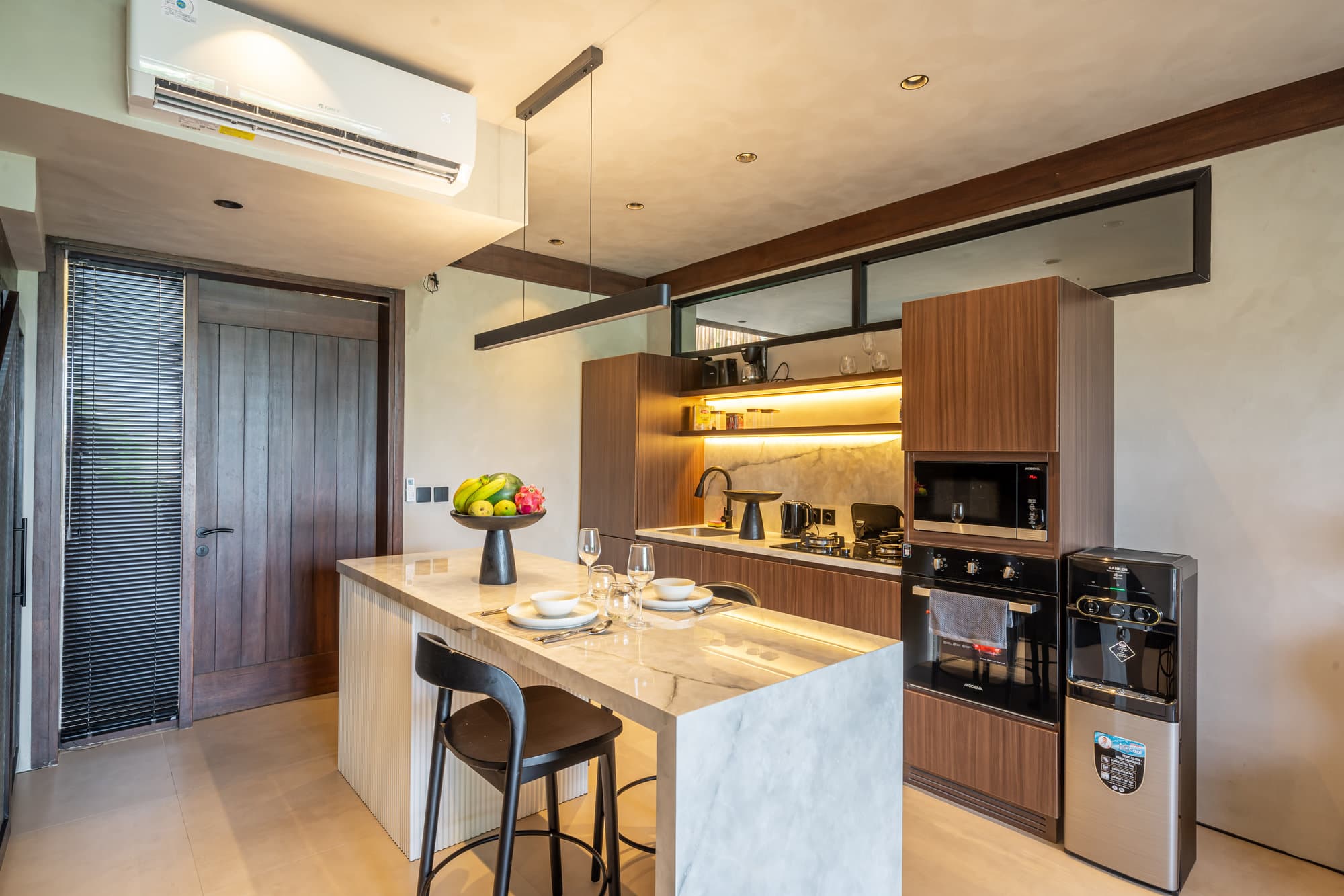 Once you book, the entire property is at your disposal. You will have access to our beautiful living room – simple yet stylish. The private kitchen is harmoniously integrated with the living room, creating a comfortable and social atmosphere. Each room is air conditioned and has its own view of the fresh water, ensuring a comfortable and unforgettable stay with us.