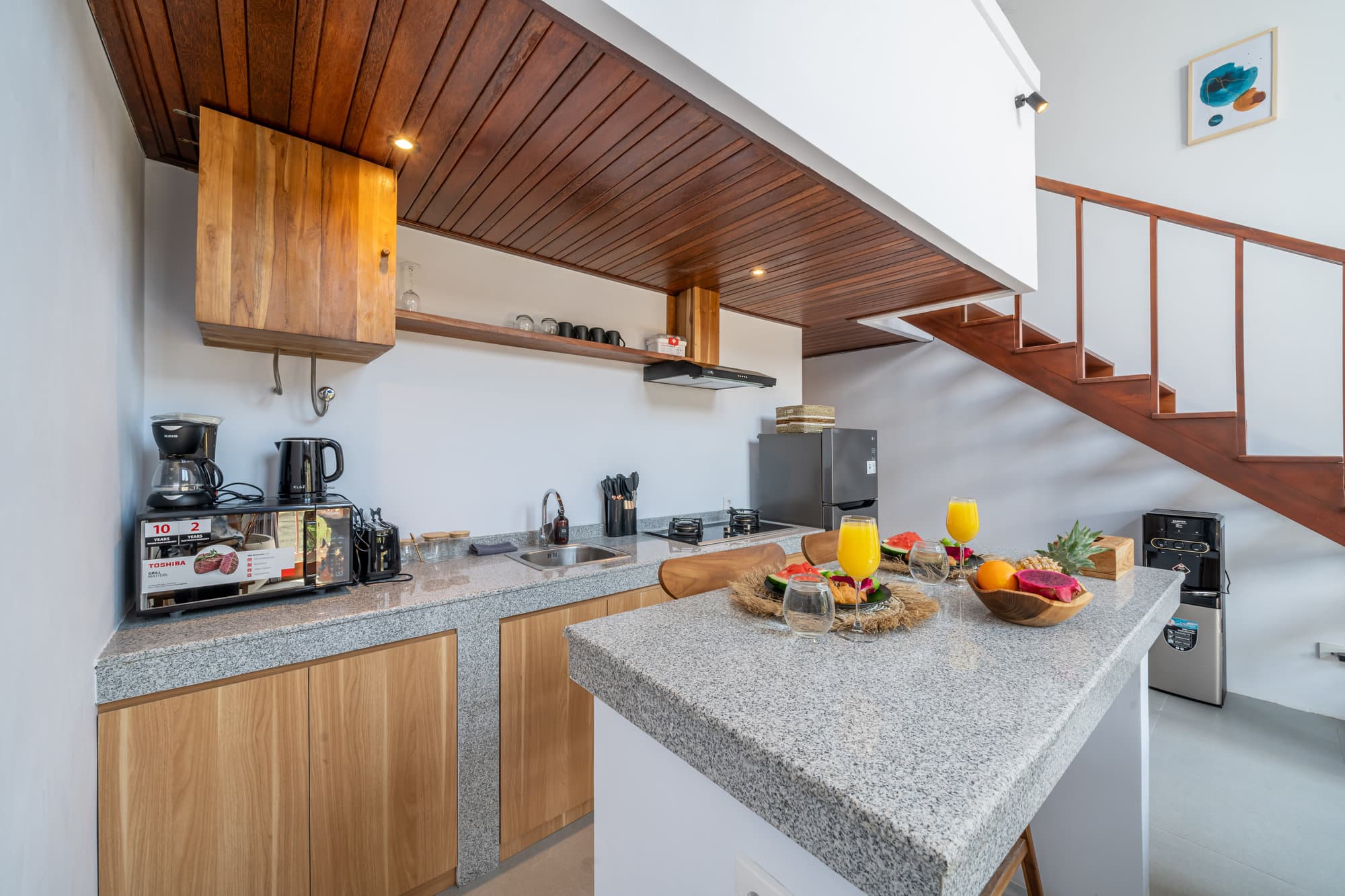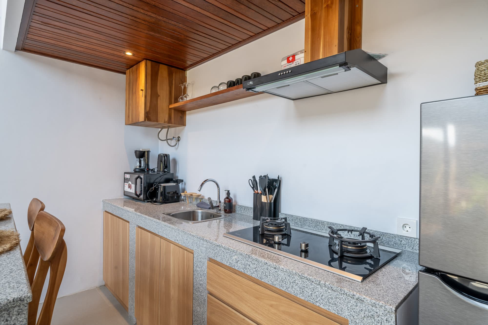 Cook with grace: Enjoy preparing meals in the modern, fully equipped kitchen with new appliances while admiring the serene garden views.
