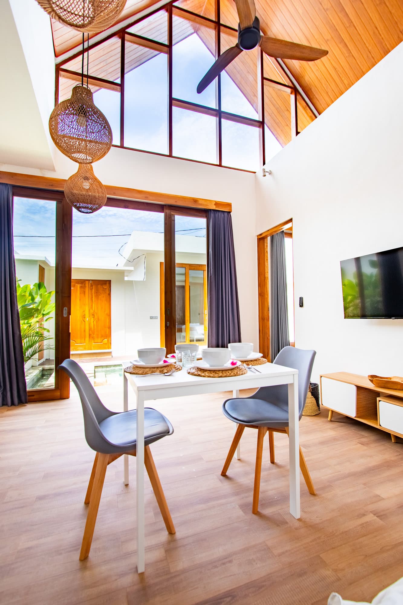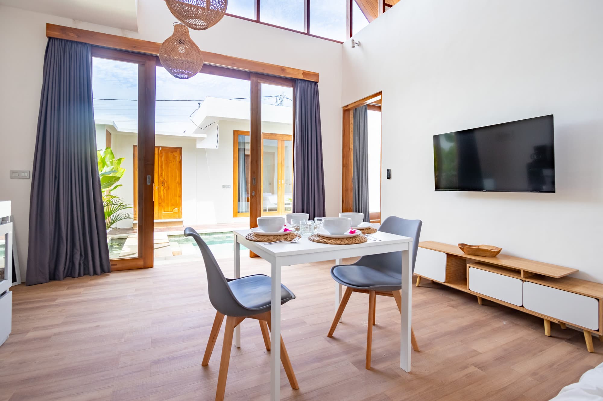 Lounge by the pool with a tropical drink, dinner in your own kitchen, an evening with Netflix – Villa A 12 will give you comfort and privacy in Bali. Ideal for vacation, work and recharge.