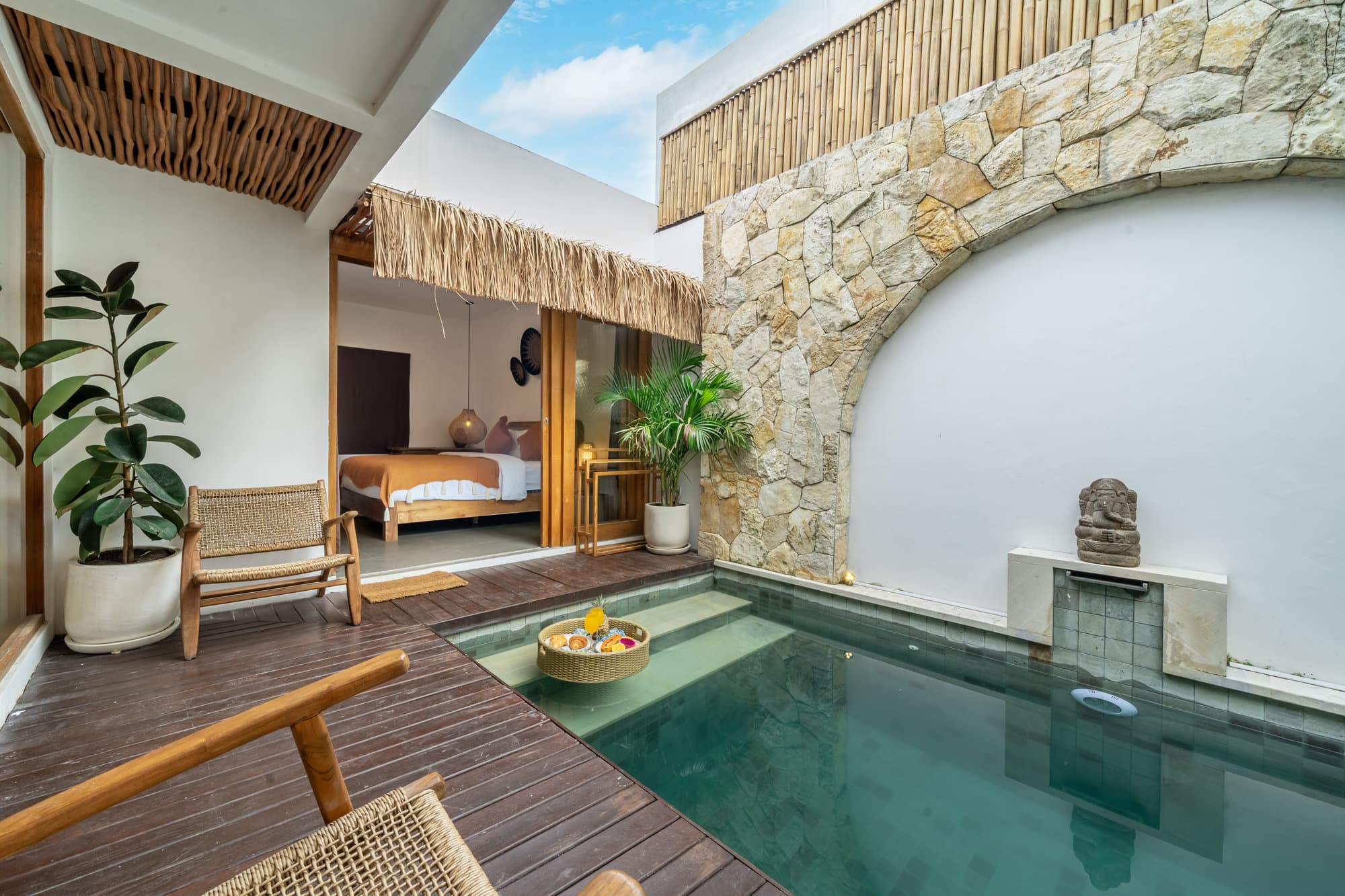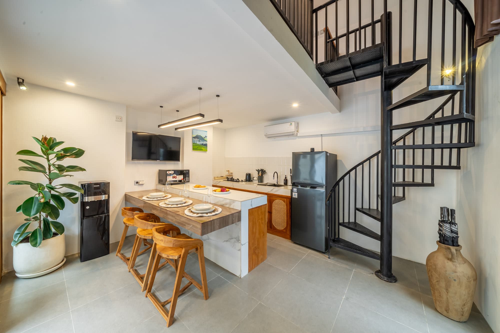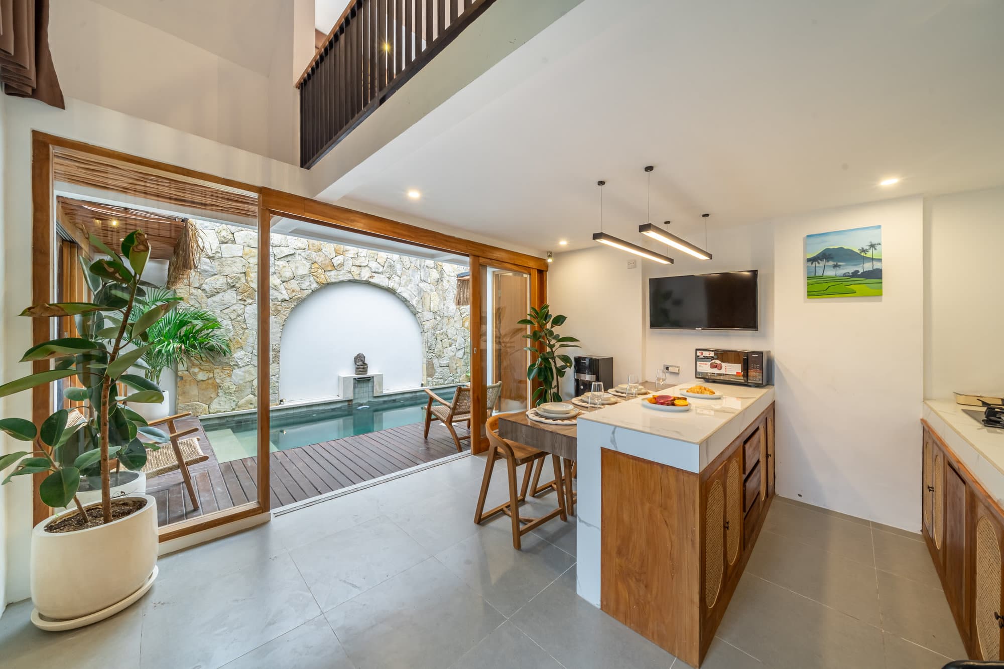 📍 Идеальное расположение между Семиньяком и Чангу: В нескольких минутах от Batu Belig, пляжа Берава и улицы Петитенгет. Побалуйте себя ужином в Nook, Café Organic или Sardine, проведите день в клубах Potato Head, Finns или Café del Mar. Любители йоги и спа тоже найдут всё, что нужно — рядом студии Desa Seni и лучшие спа-центры.