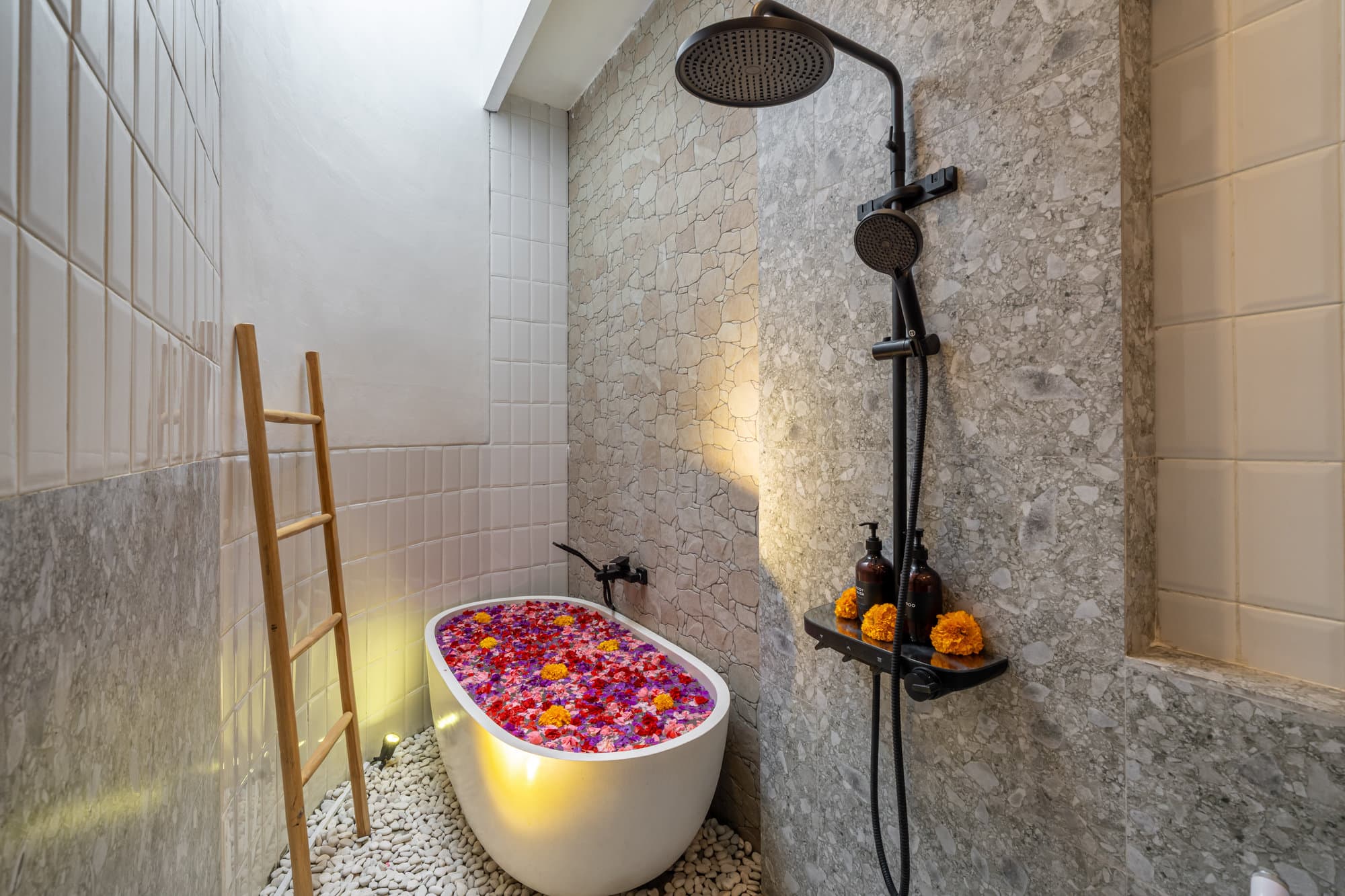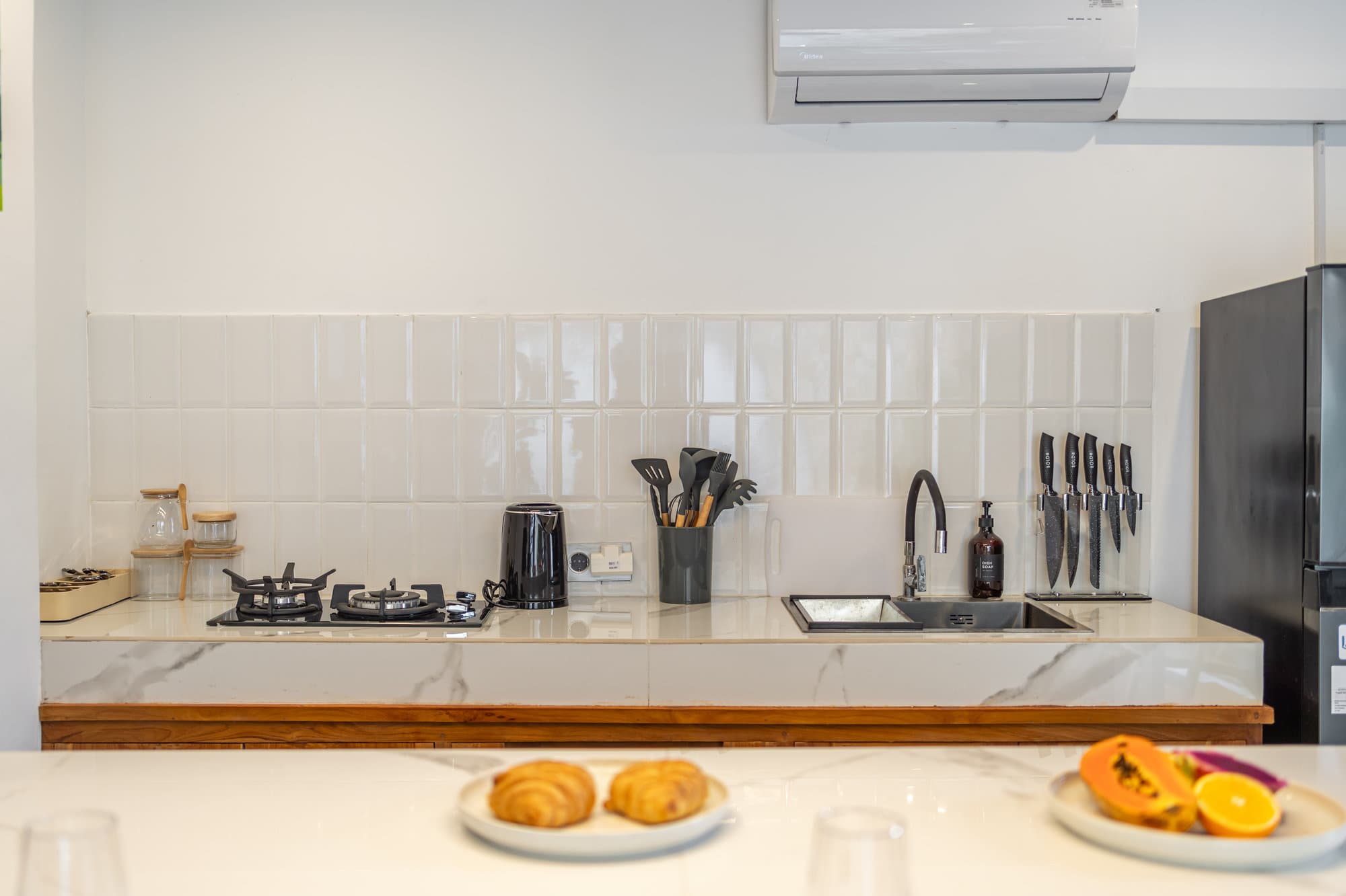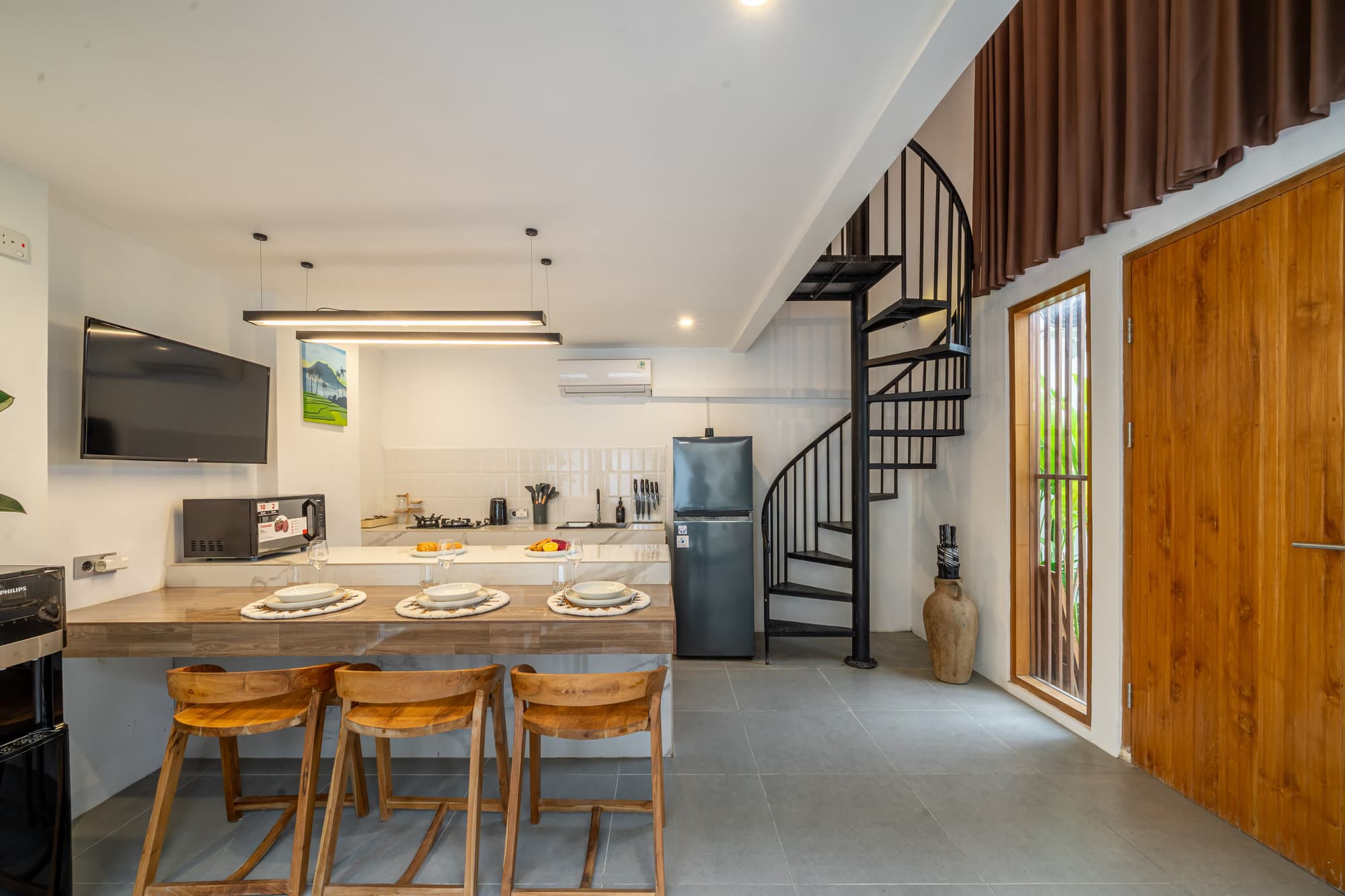 📍 Идеальное расположение между Семиньяком и Чангу: В нескольких минутах от Batu Belig, пляжа Берава и улицы Петитенгет. Побалуйте себя ужином в Nook, Café Organic или Sardine, проведите день в клубах Potato Head, Finns или Café del Mar. Любители йоги и спа тоже найдут всё, что нужно — рядом студии Desa Seni и лучшие спа-центры.