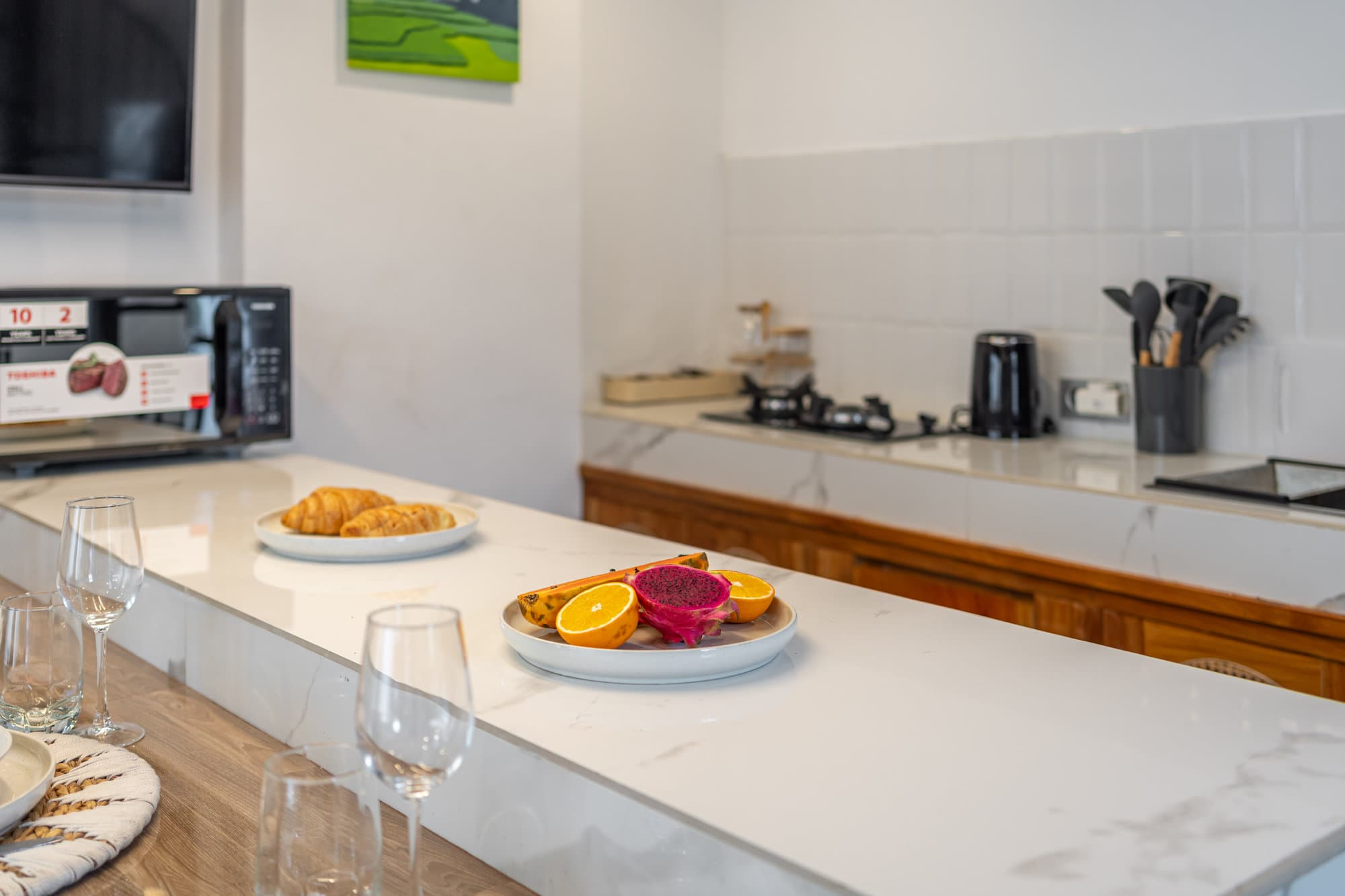 После того, как вы забронируете, вся вилла станет вашим личным убежищем. Насладитесь элегантностью нашей уютной гостиной, шикарным и уютным пространством, предназначенным для отдыха и общения. Открытая кухня легко соединяется с гостиной, создавая плавный поток, идеальный для развлечений или неформальных обедов.