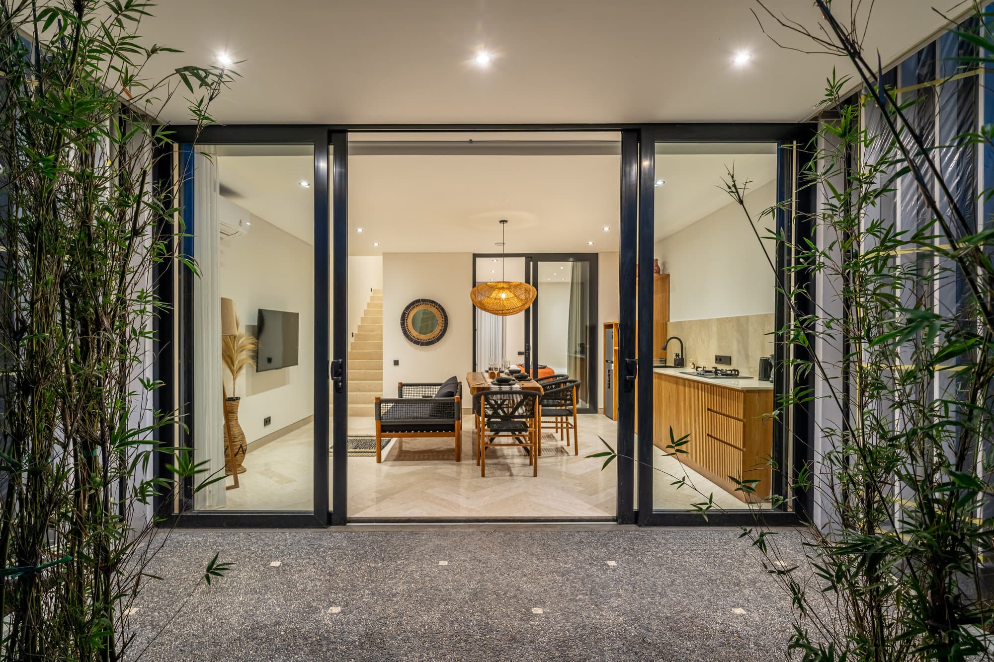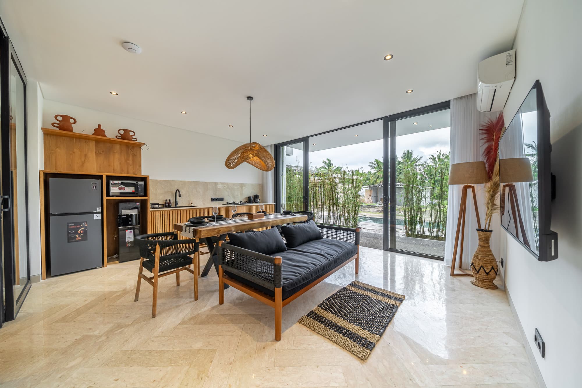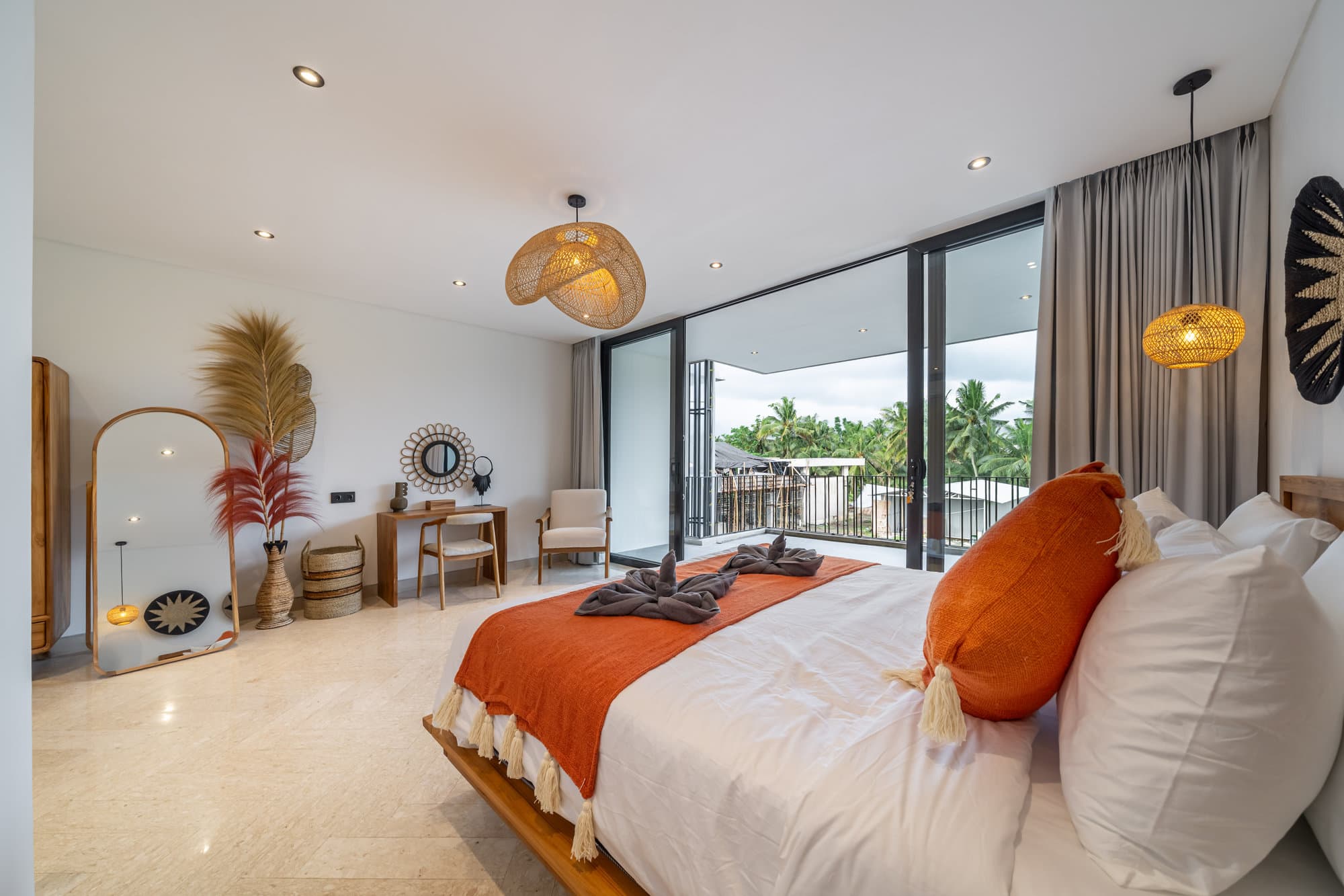 Начните день с солнечным освещением, работающего балкона, спокойной работы или массажа прямо в вилле. Пишите, отдыхайте или погружайтесь в художественную атмосферу Бали — Townhouse Т3 объединяет минимализм и вдохновляющую энергетику.