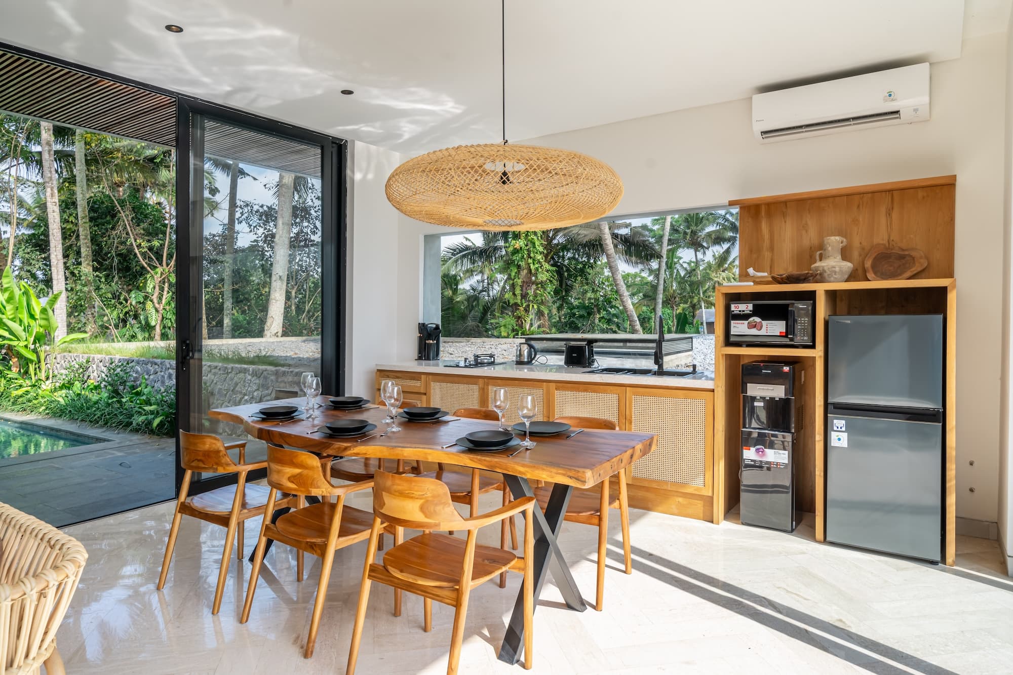• 3 стильные кондиционируемые спальни с видом на джунгли