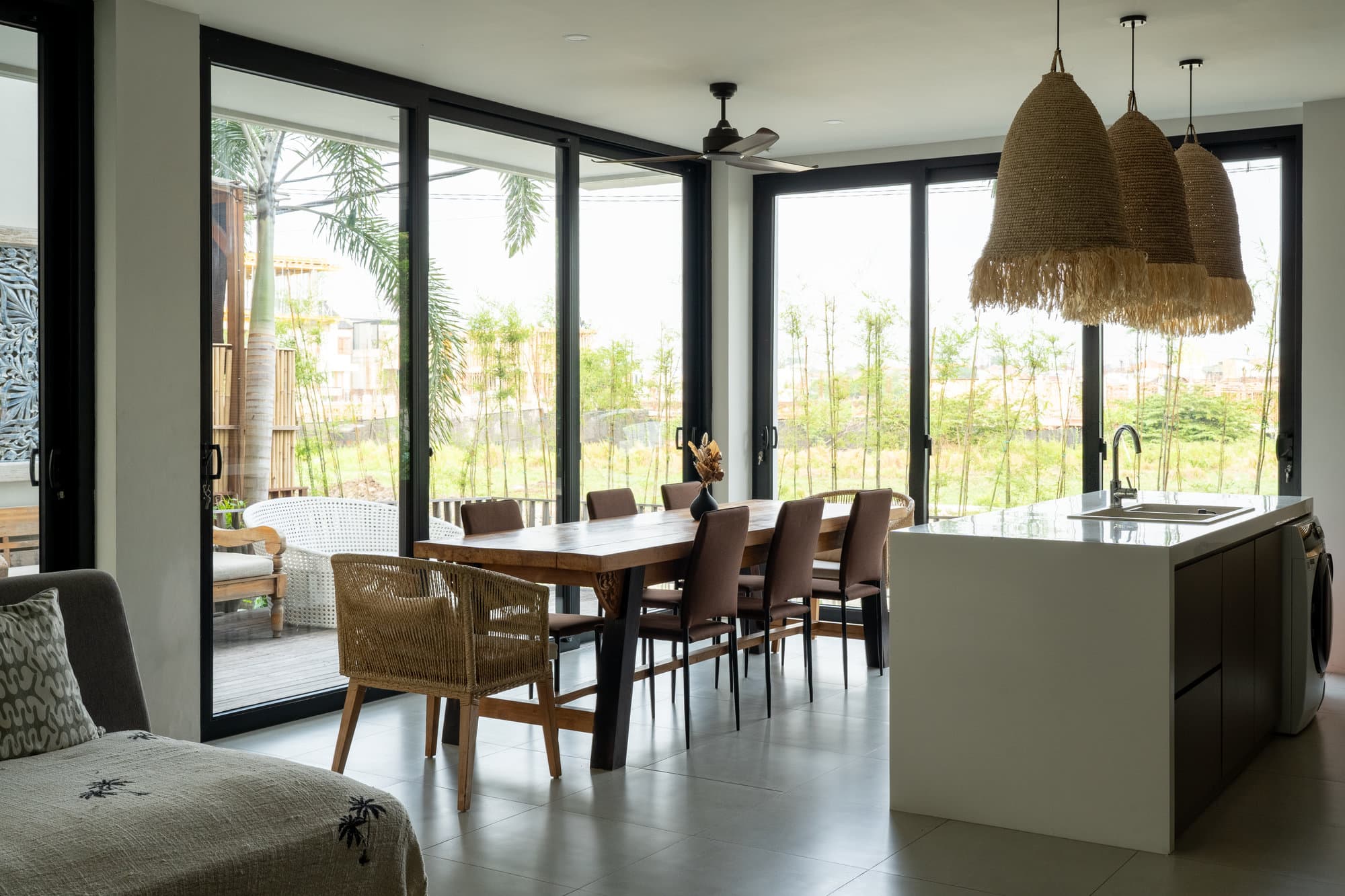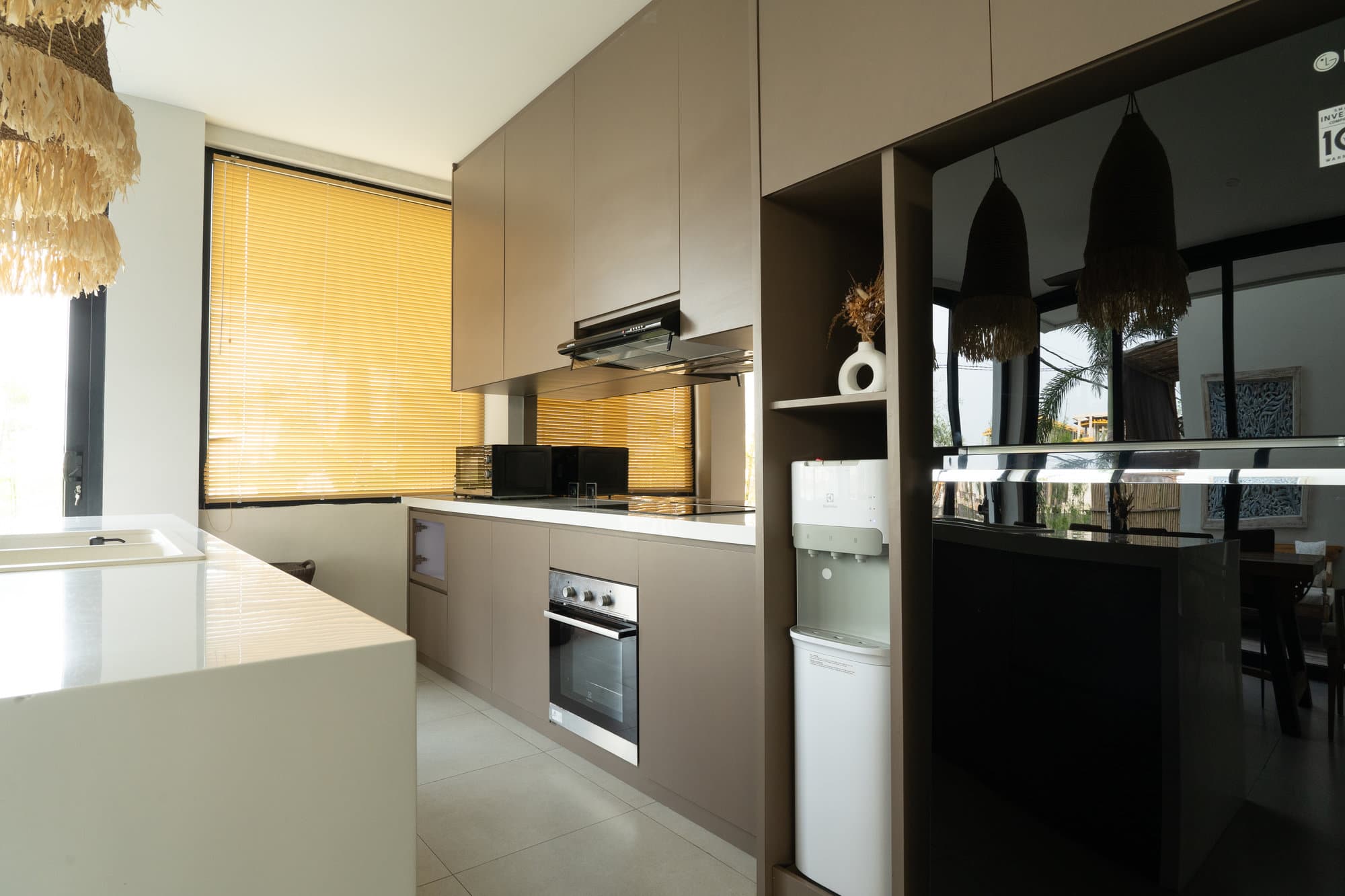 После того, как вы забронируете, вся вилла станет вашим личным убежищем. Насладитесь элегантностью нашей уютной гостиной, шикарным и уютным пространством, предназначенным для отдыха и общения. Открытая кухня легко соединяется с гостиной, создавая плавный поток, идеальный для развлечений или неформальных обедов.