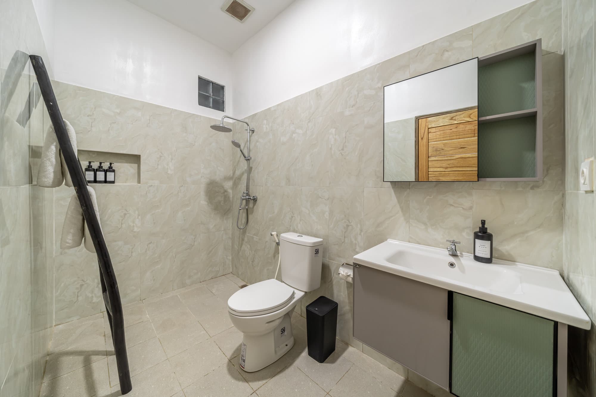 После того как вы забронируете, весь объект будет в вашем распоряжении. У вас будет доступ к нашей красивой гостиной — простой и стильной. Кухня гармонично интегрирована с гостиной, создавая комфортную и социальную атмосферу. Каждая комната оснащена кондиционером и имеет собственный вид на зеленый сад, что гарантирует комфортное и незабываемое пребывание у нас.