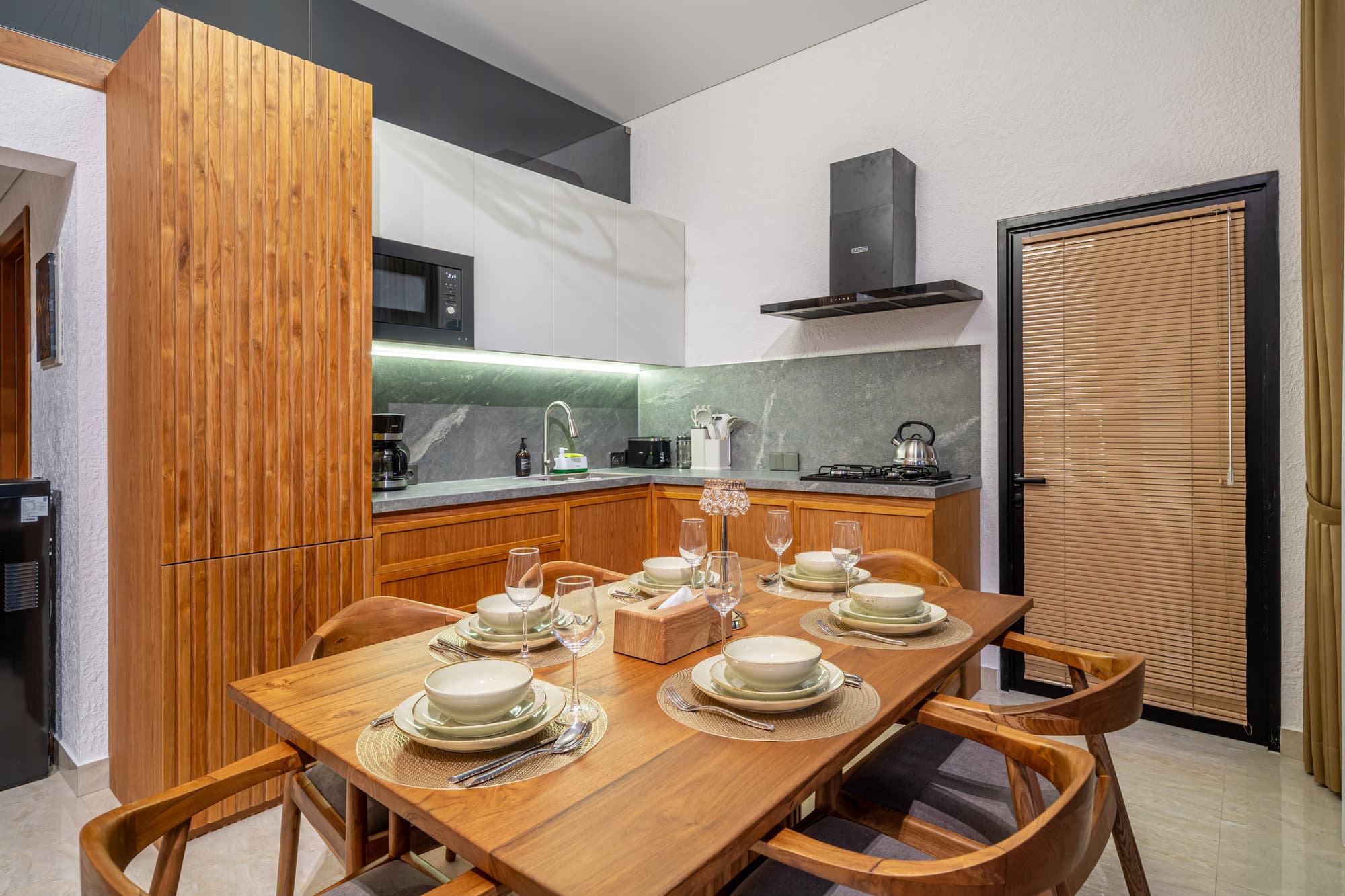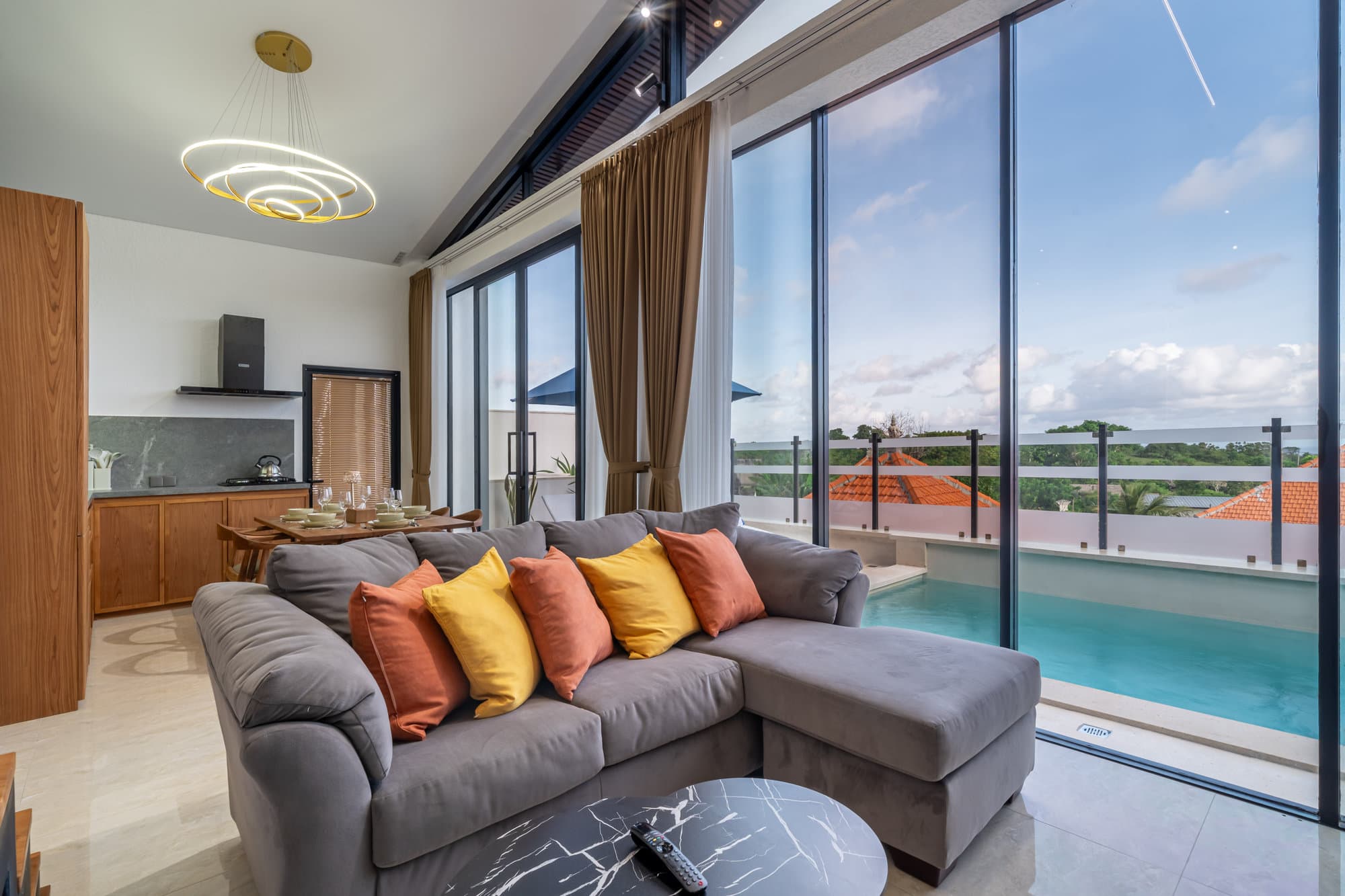 После того, как вы забронируете, вся вилла станет вашим личным убежищем. Насладитесь элегантностью нашей уютной гостиной, шикарным и уютным пространством, предназначенным для отдыха и общения. Открытая кухня легко соединяется с гостиной, создавая плавный поток, идеальный для развлечений или неформальных обедов.