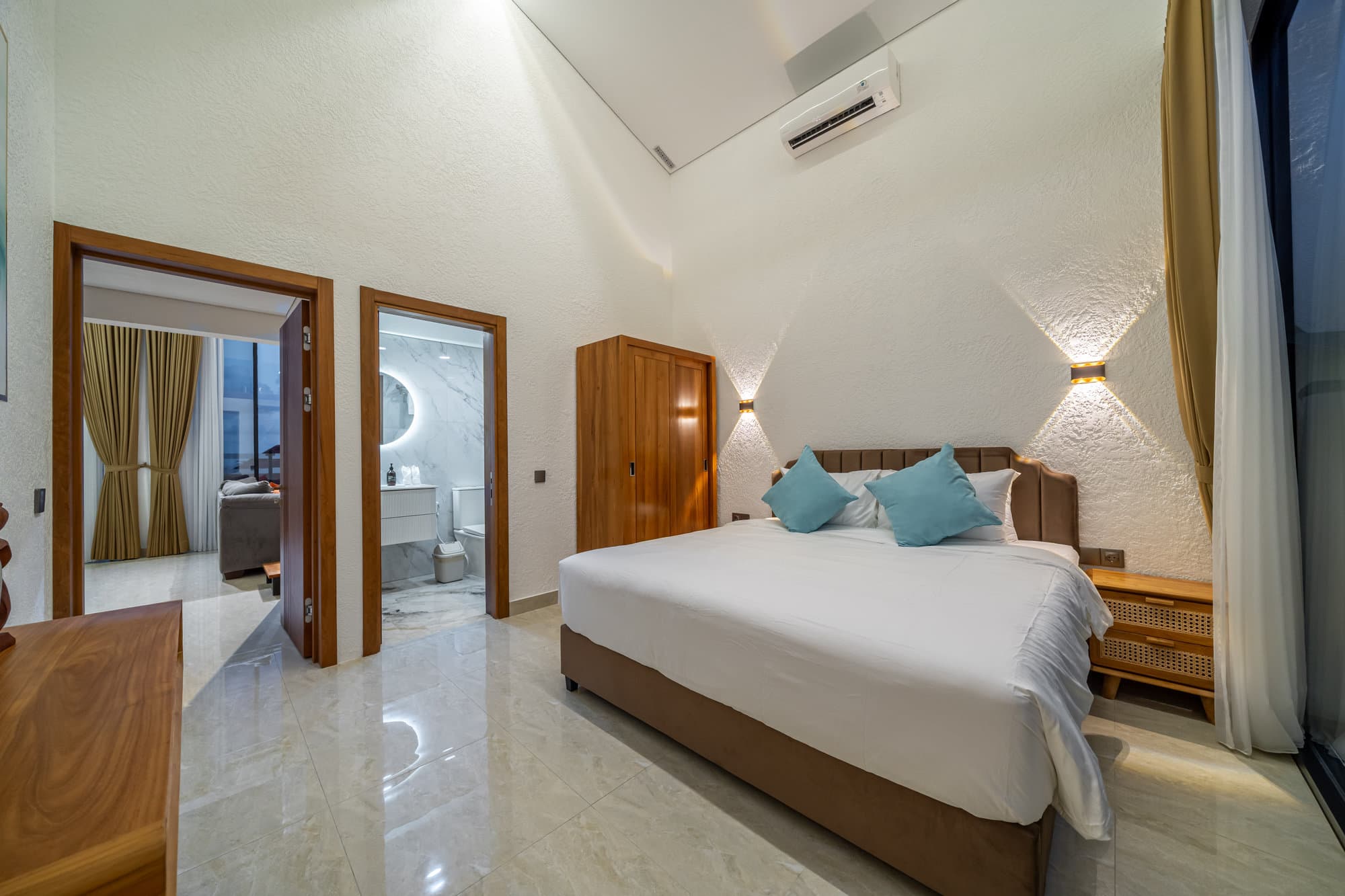 Каждая спальня предлагает свой собственный оазис с освежающим видом на пресную воду и кондиционером, обеспечивающим спокойное и комфортное пребывание. Ваш незабываемый отдых ждет в этом тщательно спроектированном убежище.