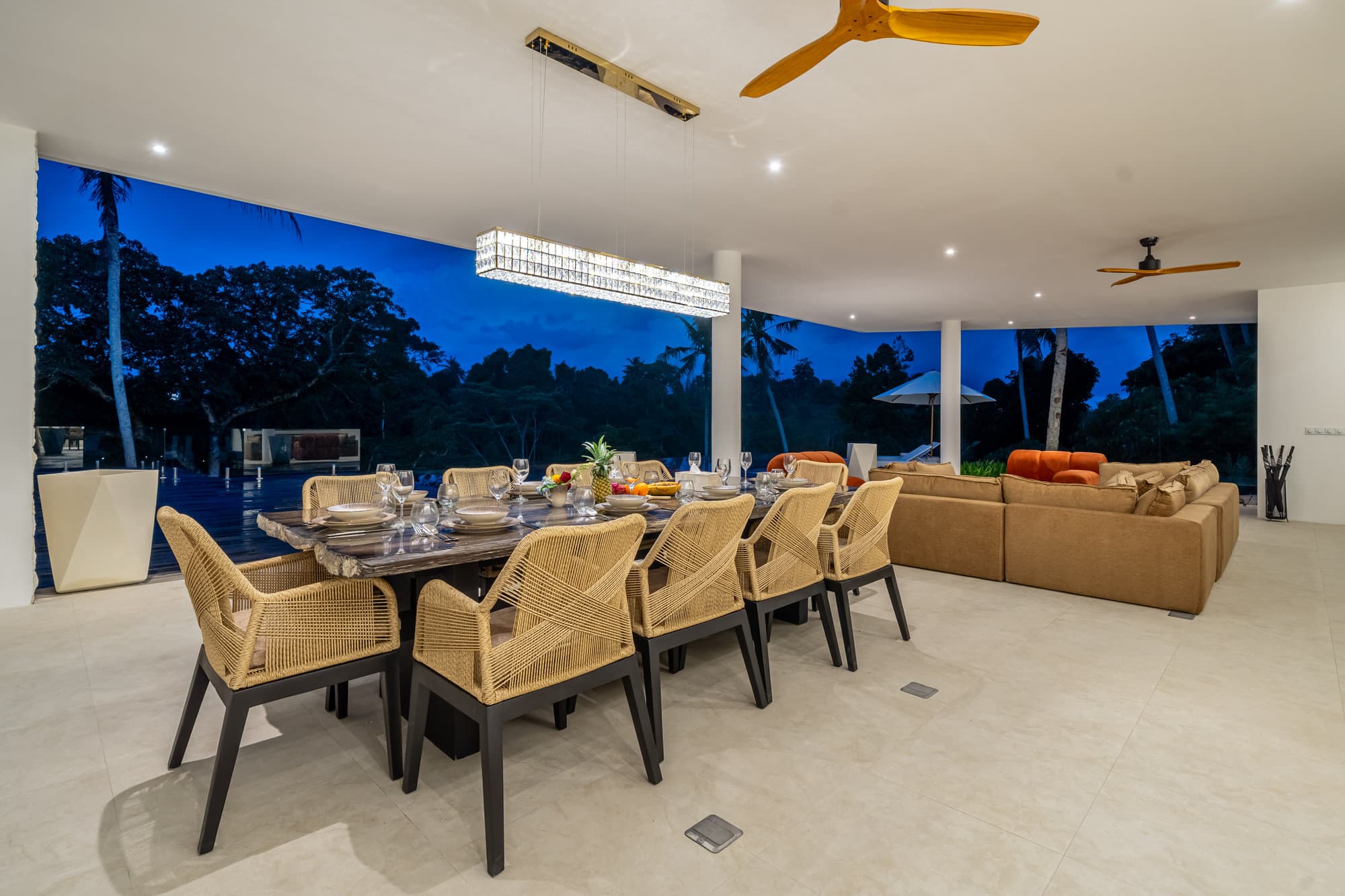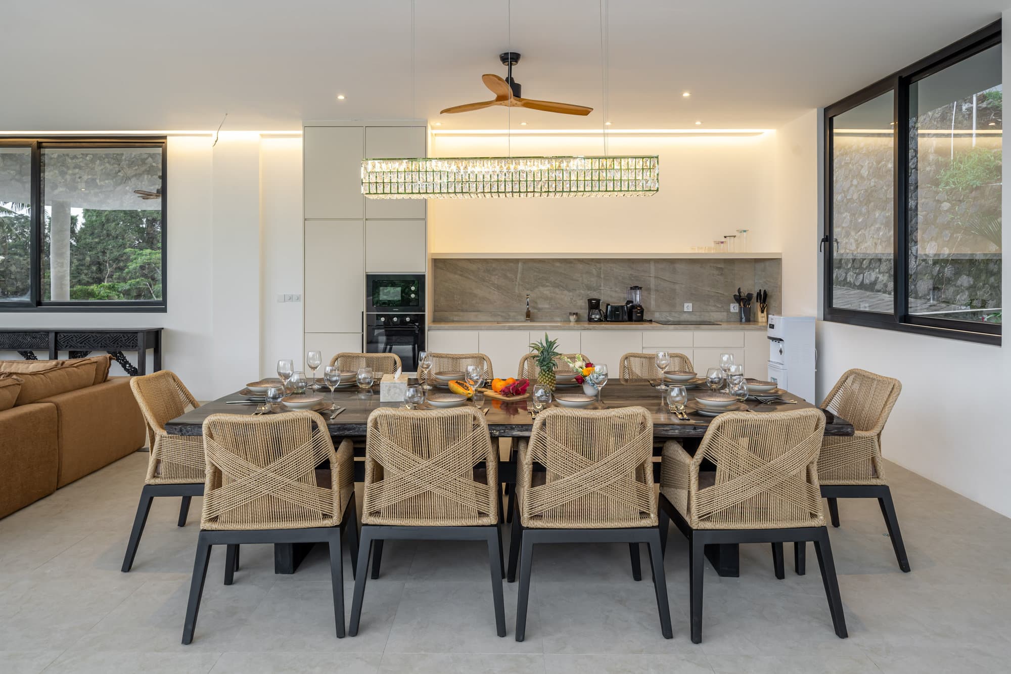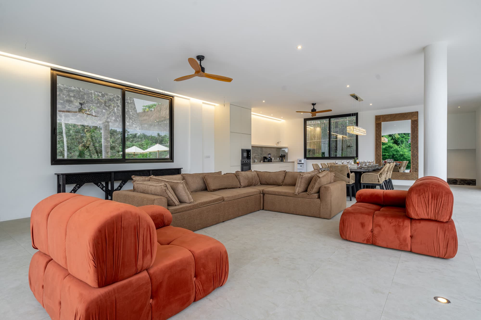 После того, как вы забронируете, вся вилла станет вашим личным убежищем. Насладитесь элегантностью нашей уютной гостиной, шикарным и уютным пространством, предназначенным для отдыха и общения. Открытая кухня легко соединяется с гостиной, создавая плавный поток, идеальный для развлечений или неформальных обедов.