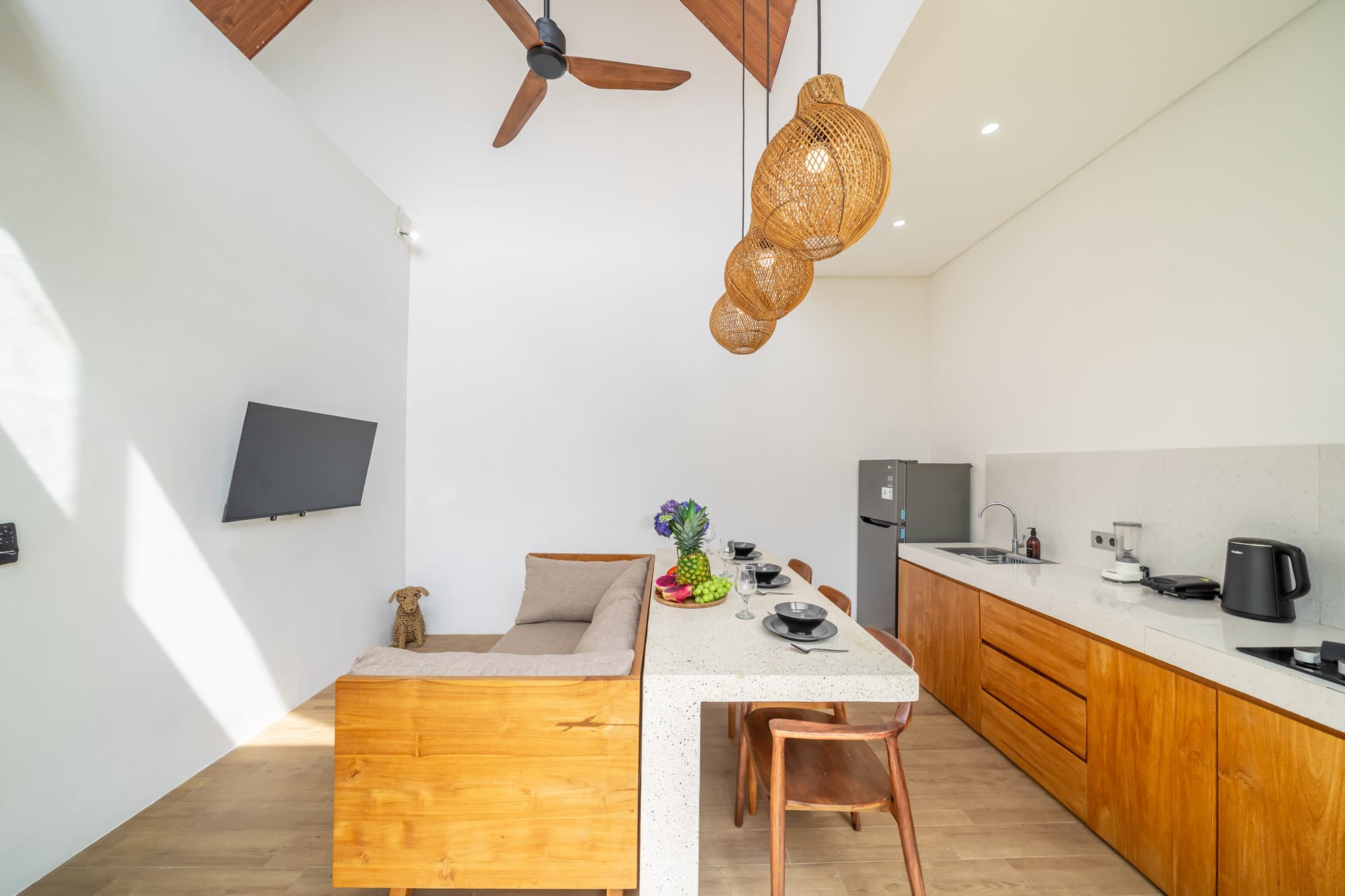 Пейте кофе в солнечном саду, расслабляйтесь с Netflix в прохладной гостиной или плавайте под звёздами в приватном бассейне — Villa A 26 создана для комфорта и гармонии.