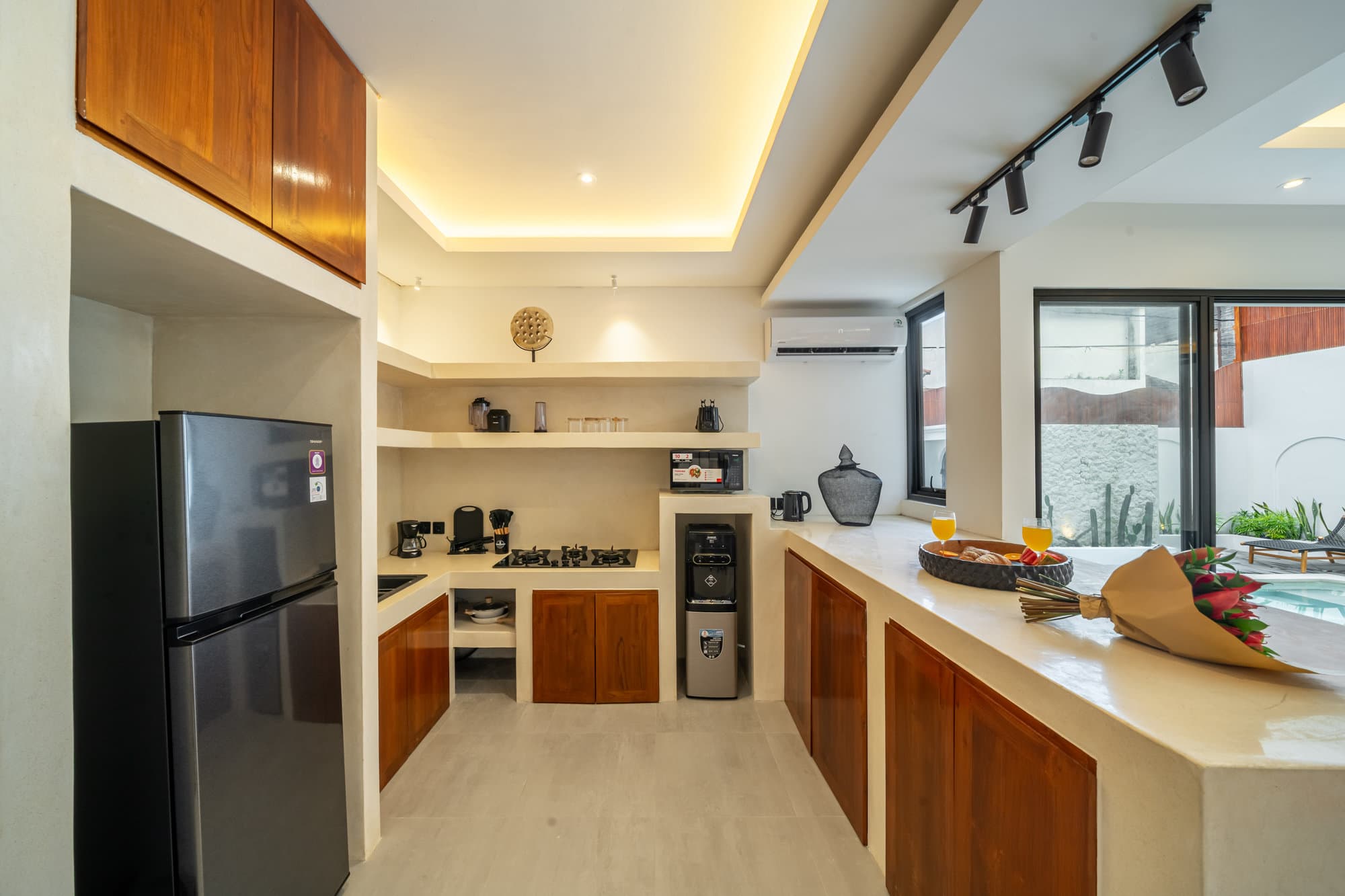 В Alisa Villa гости получают эксклюзивный доступ к целому ряду роскошных удобств, предназначенных для максимального расслабления и наслаждения: собственный бассейн, площадка для барбекю, пышный зеленый сад, терраса на крыше и частная, полностью оборудованная кухня. Все эти зоны, а также вся собственность, находятся исключительно в вашем распоряжении.