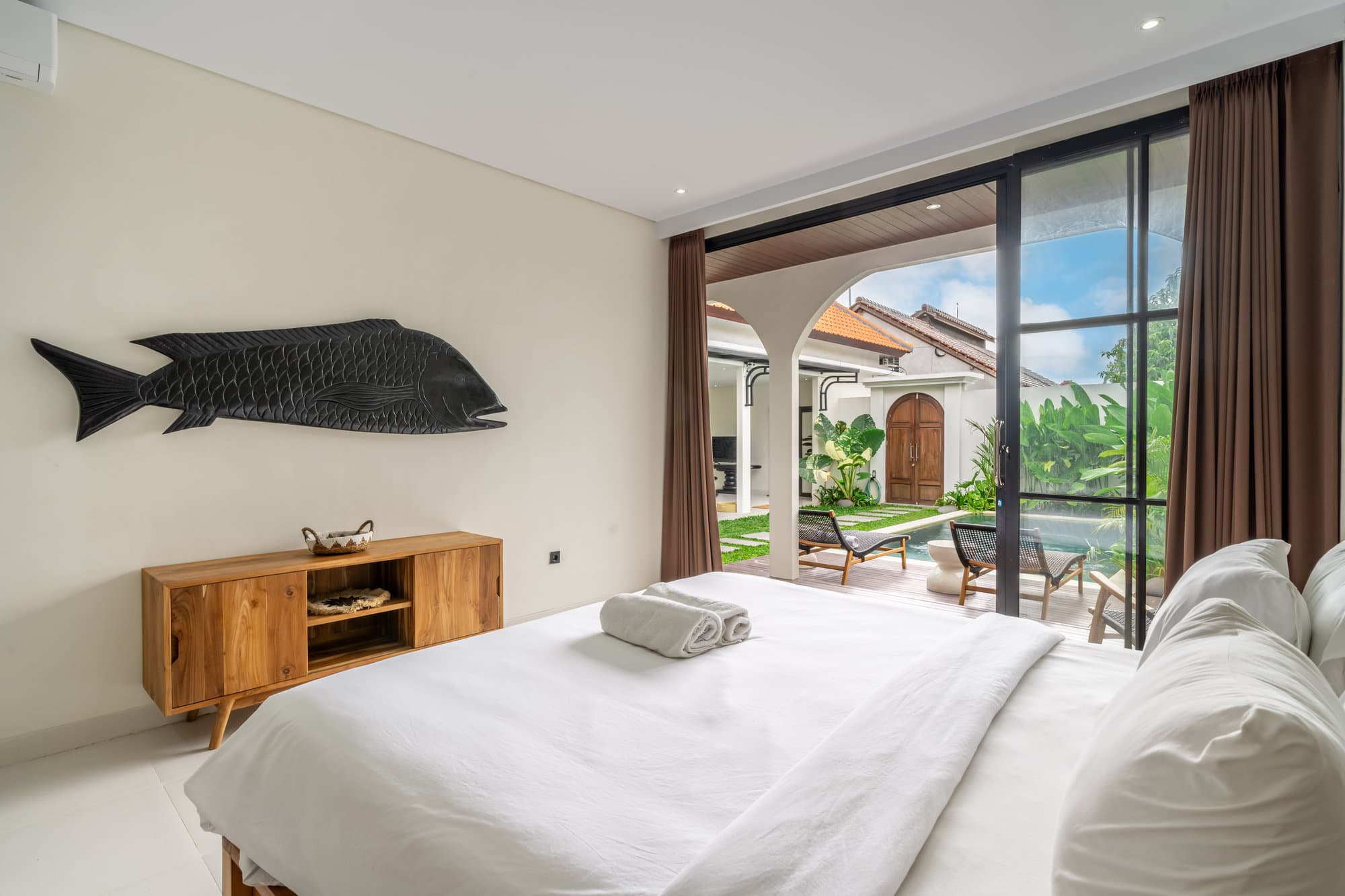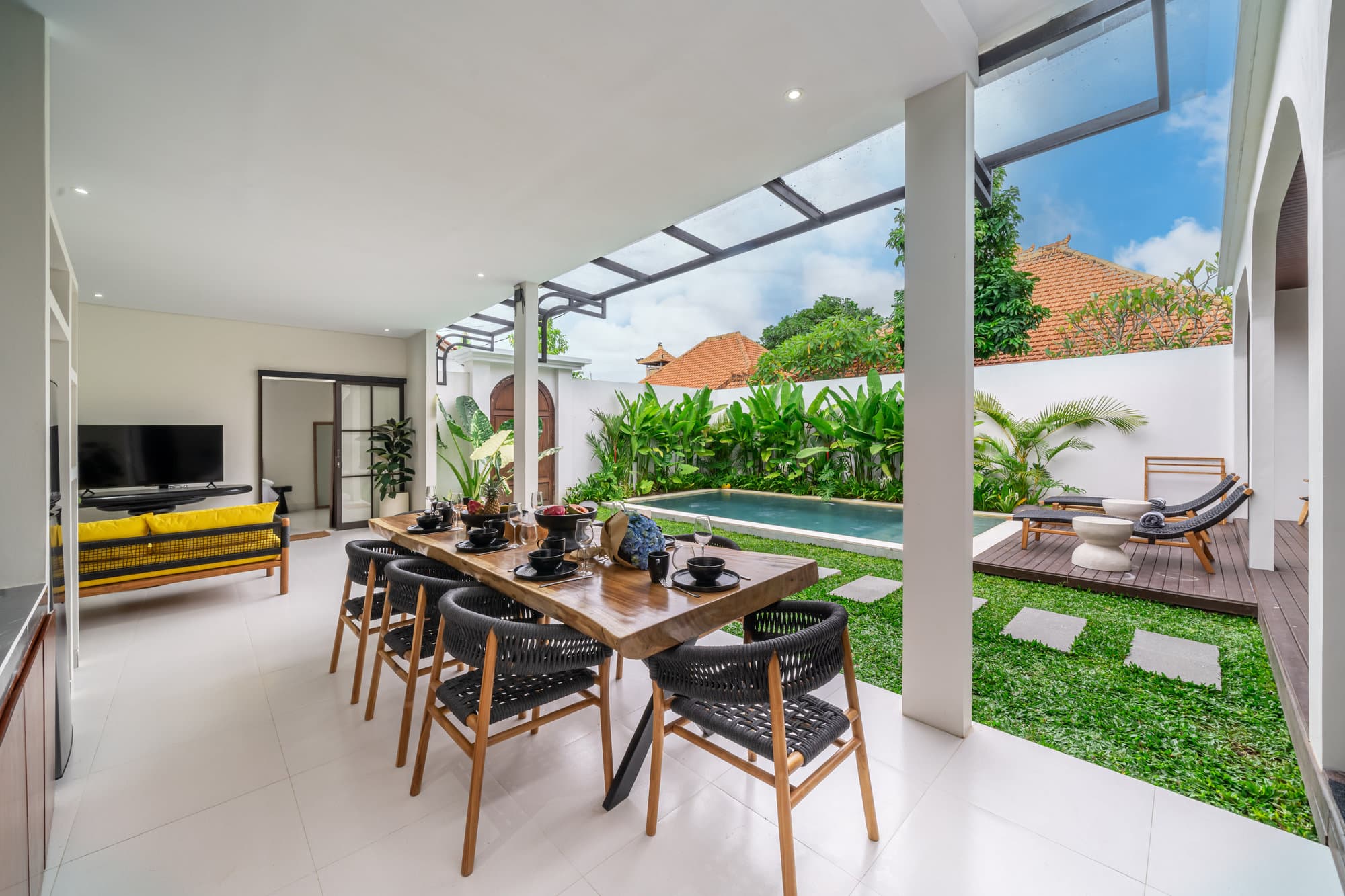Вилла находится в тихом районе Бадунга, всего в нескольких минутах от живописных пляжей Бали — таких как Джимбаран, Баланган и Дримленд. Рядом — модные бич-клубы, культовые закаты и спокойные прибрежные ландшафты.