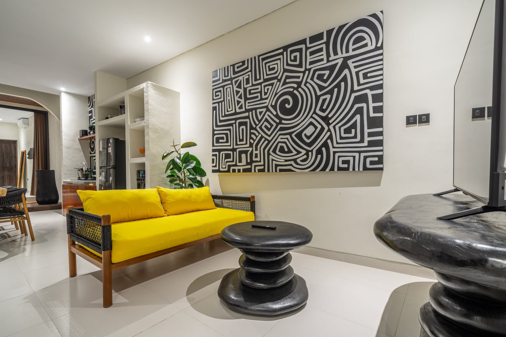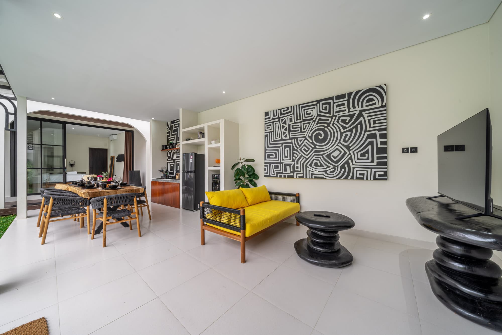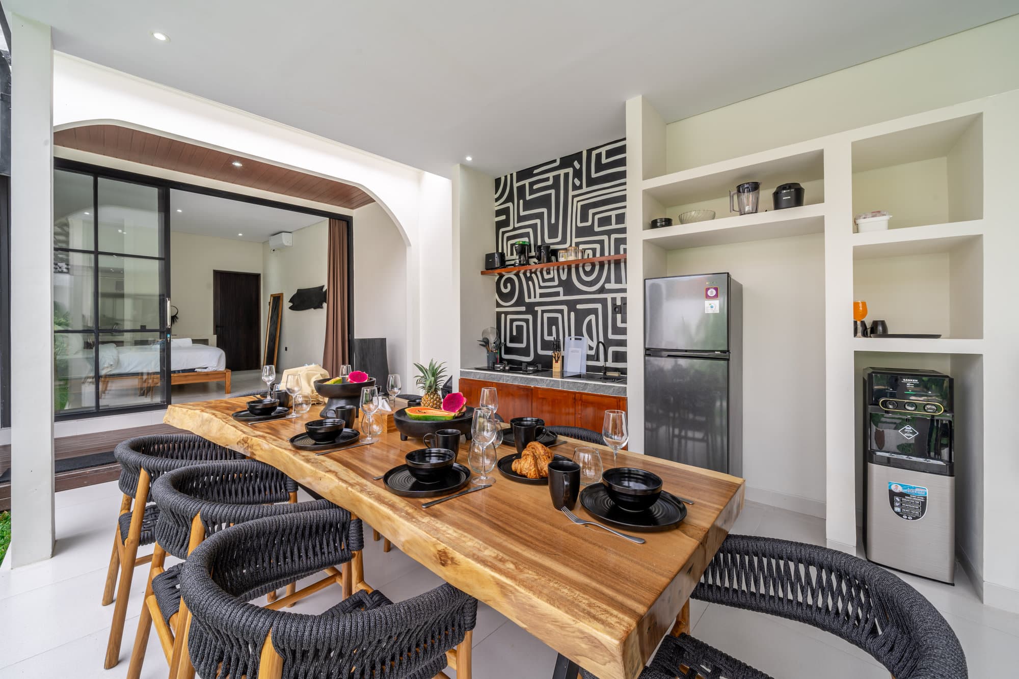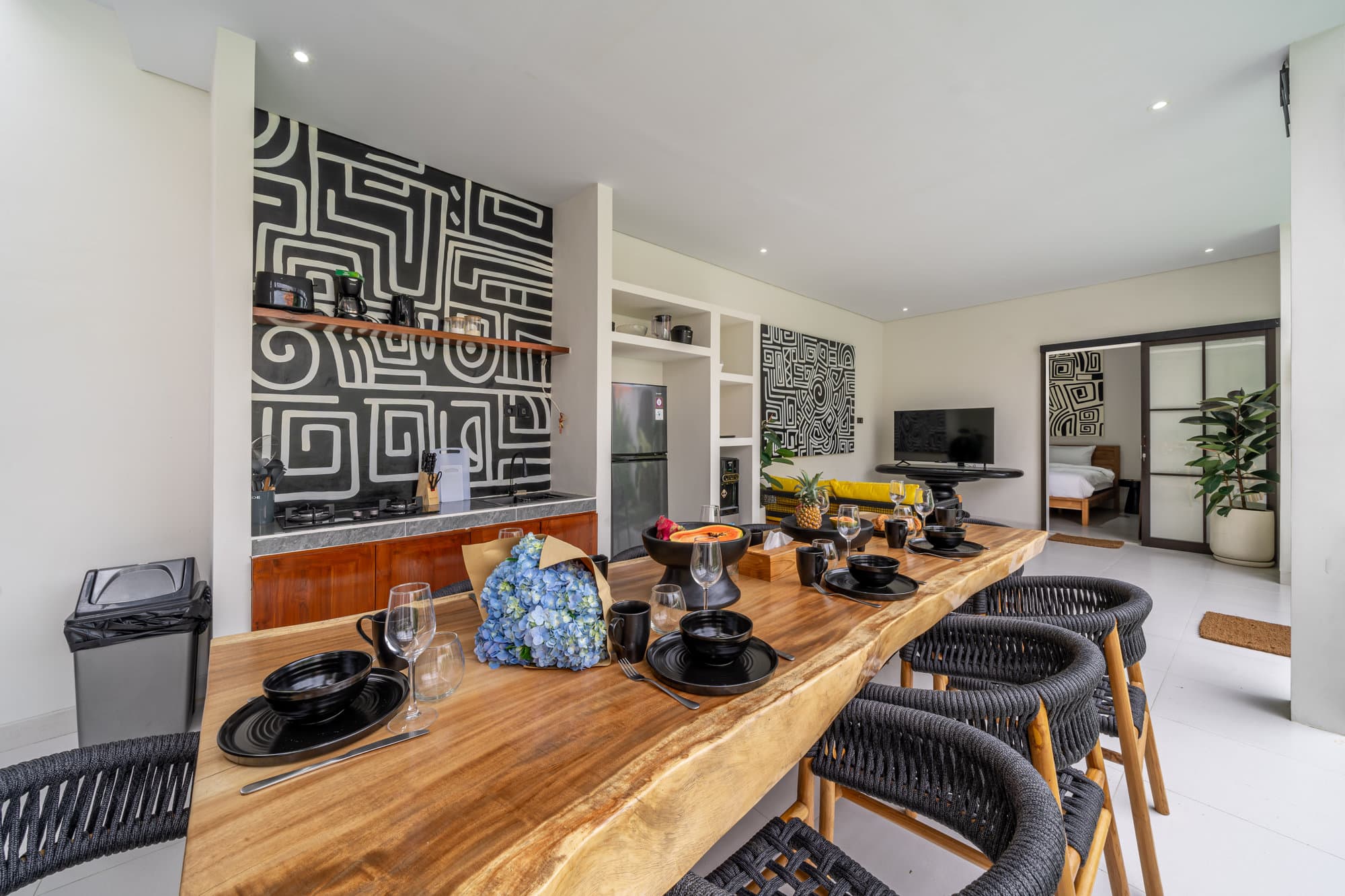 После того, как вы забронируете, вся вилла станет вашим личным убежищем. Насладитесь элегантностью нашей гостиной, — шикарной и уютной обстановкой, предназначенной для отдыха и общения. Открытая кухня легко соединяется с гостиной и создает идеально подходящее для развлечений и неформальных обедов пространство.