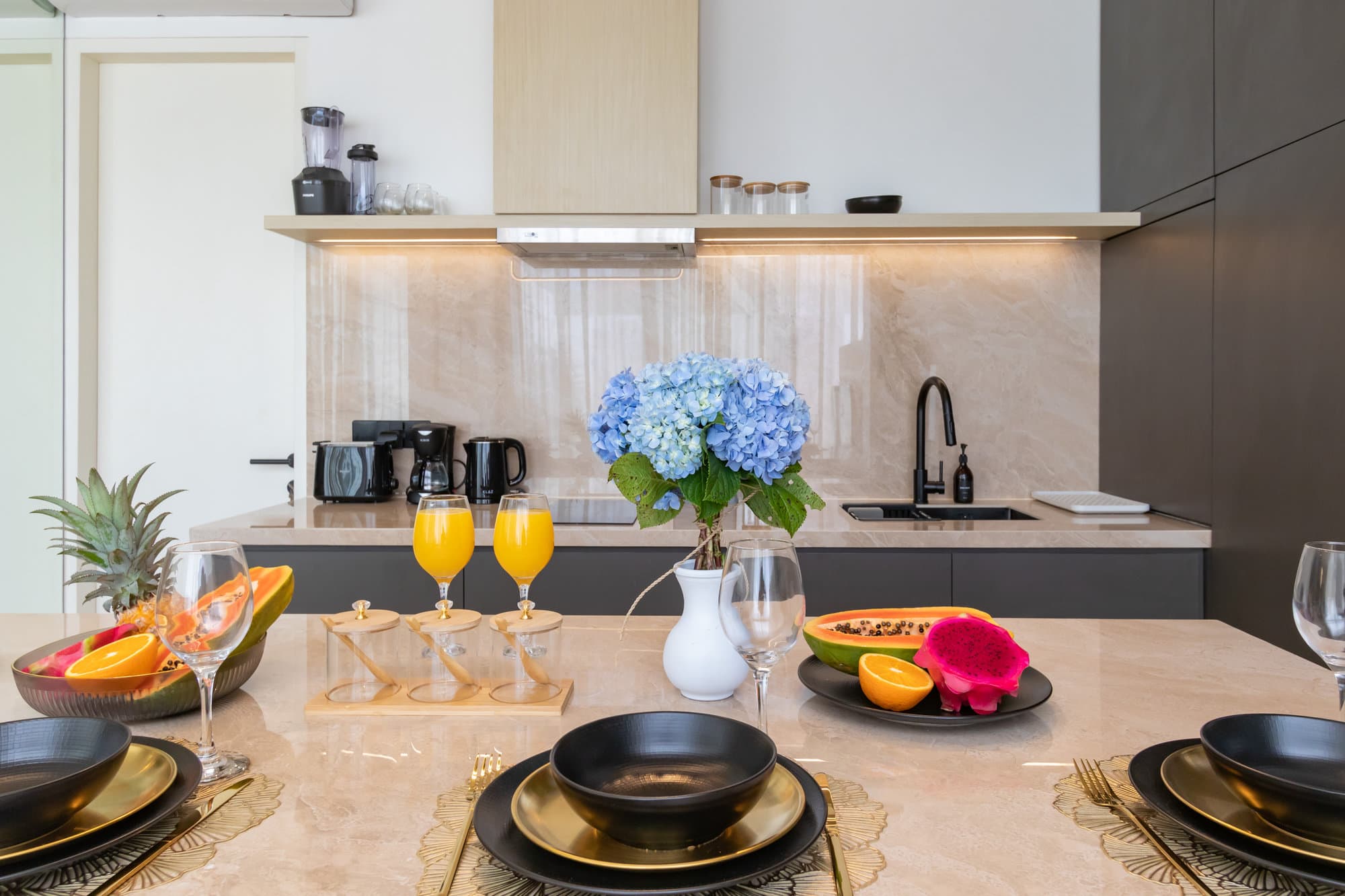 Кулинарные изыски ждут вас: продемонстрируйте свои кулинарные навыки на стильной, полностью оборудованной кухне с новой техникой и восхитительными видами на безмятежный сад.