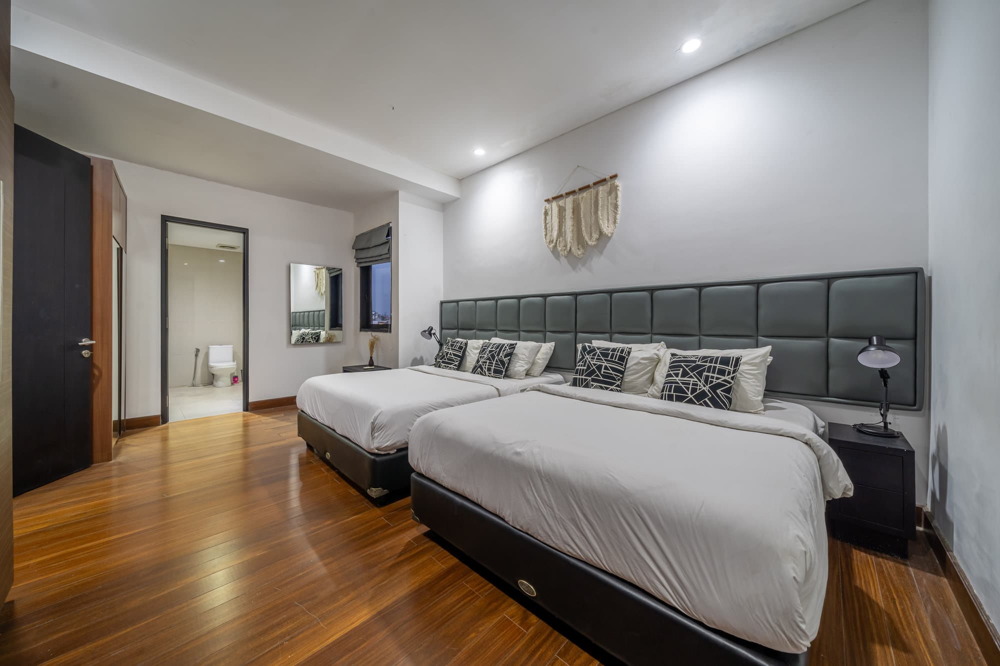 Наслаждайтесь спокойствием четырех просторных спален размера «king-size», каждая из которых имеет собственную ванную комнату. Эти частные заповедники предлагают идеальное место для отдыха и восстановления сил в полном комфорте.