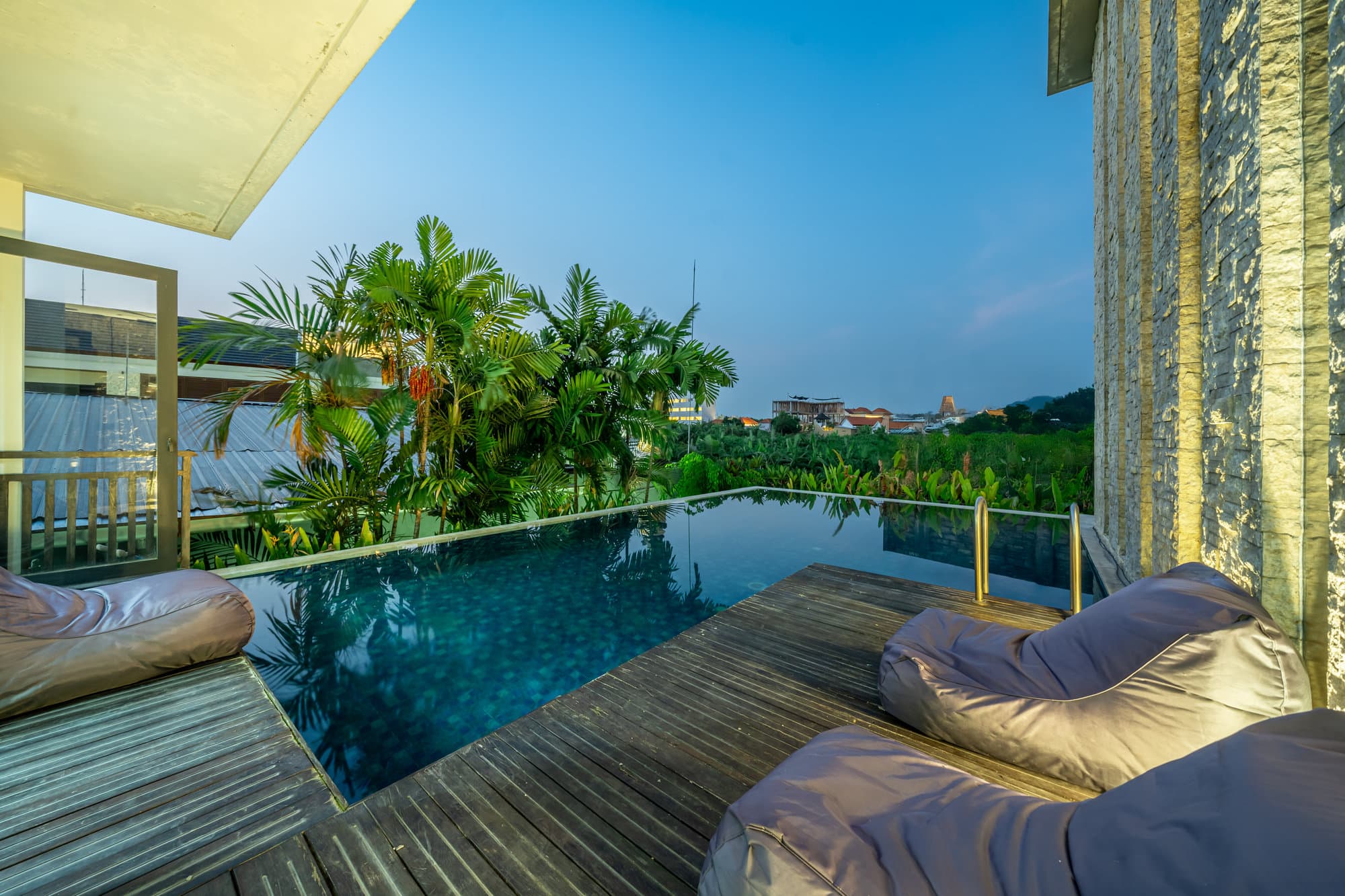 Спрятанная в оживлённом районе Чангу, новая дизайнерская вилла Volcano Villa сочетает минималистичную элегантность с расслабленной атмосферой Бали. С четырьмя стильными спальнями, просторной гостиной и большим частным бассейном — это идеальная база для семей или компаний друзей, стремящихся к комфорту и вдохновению.